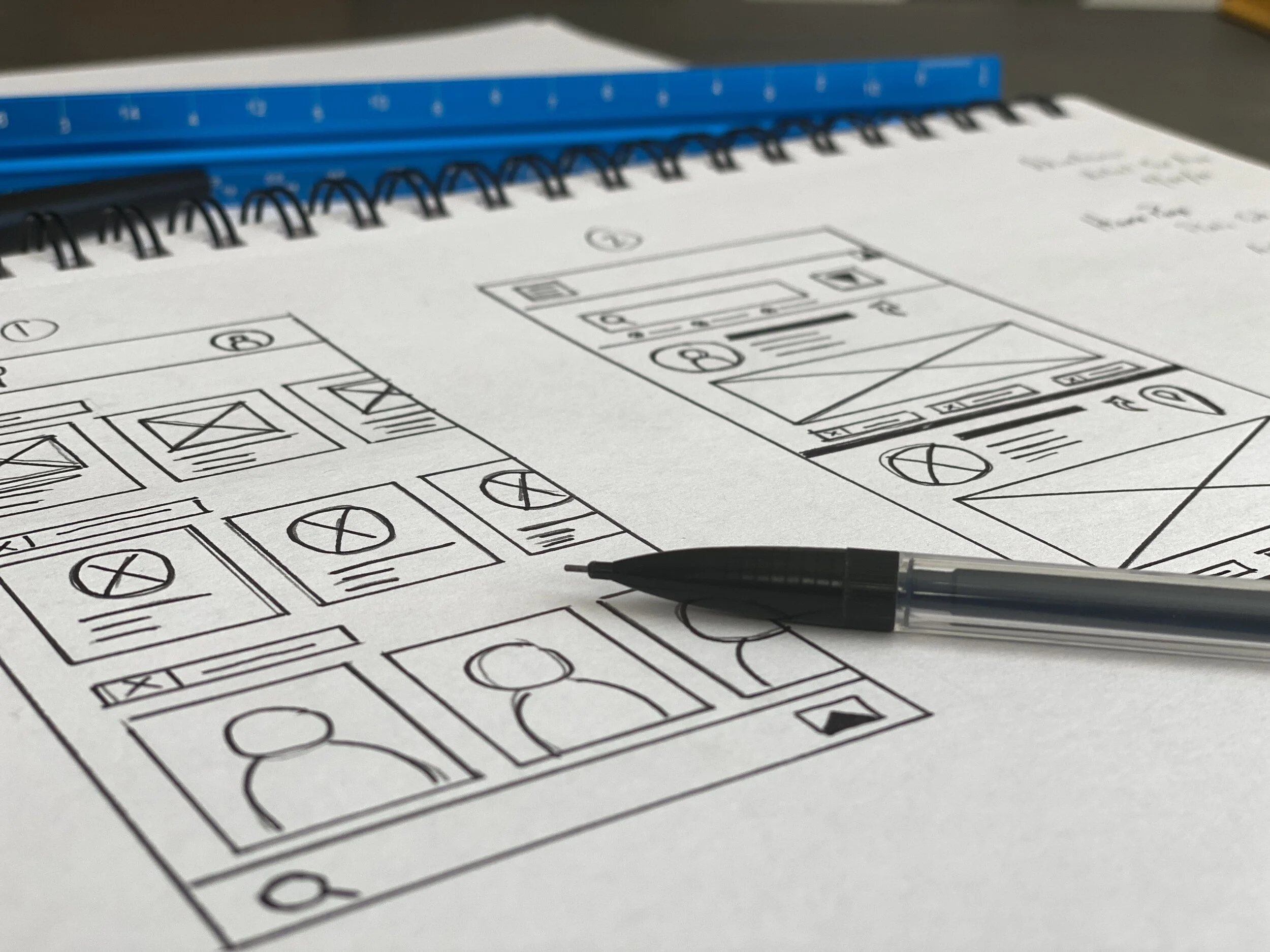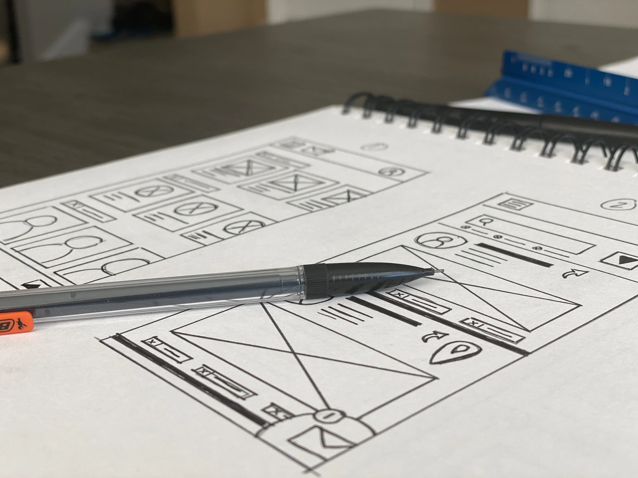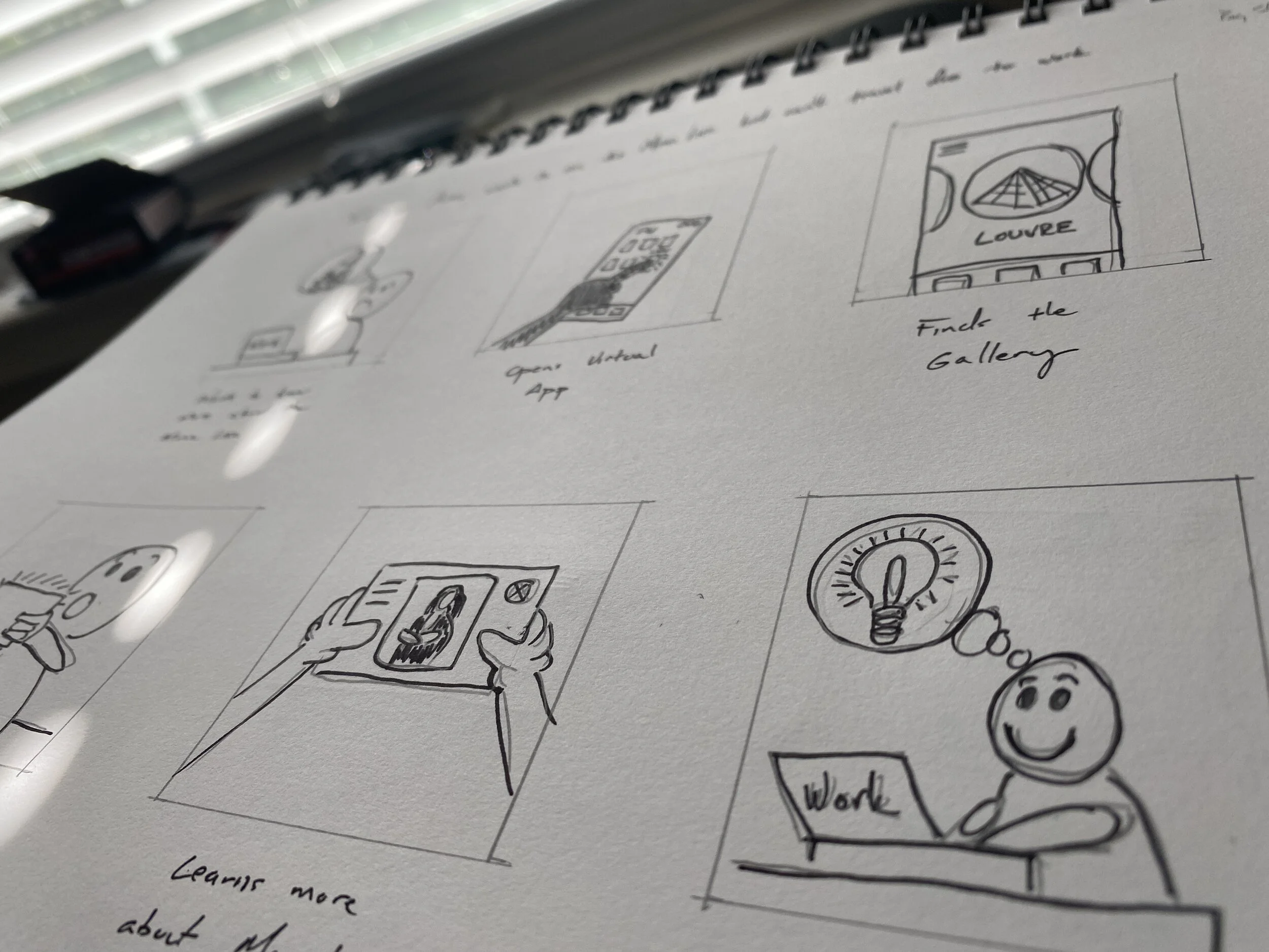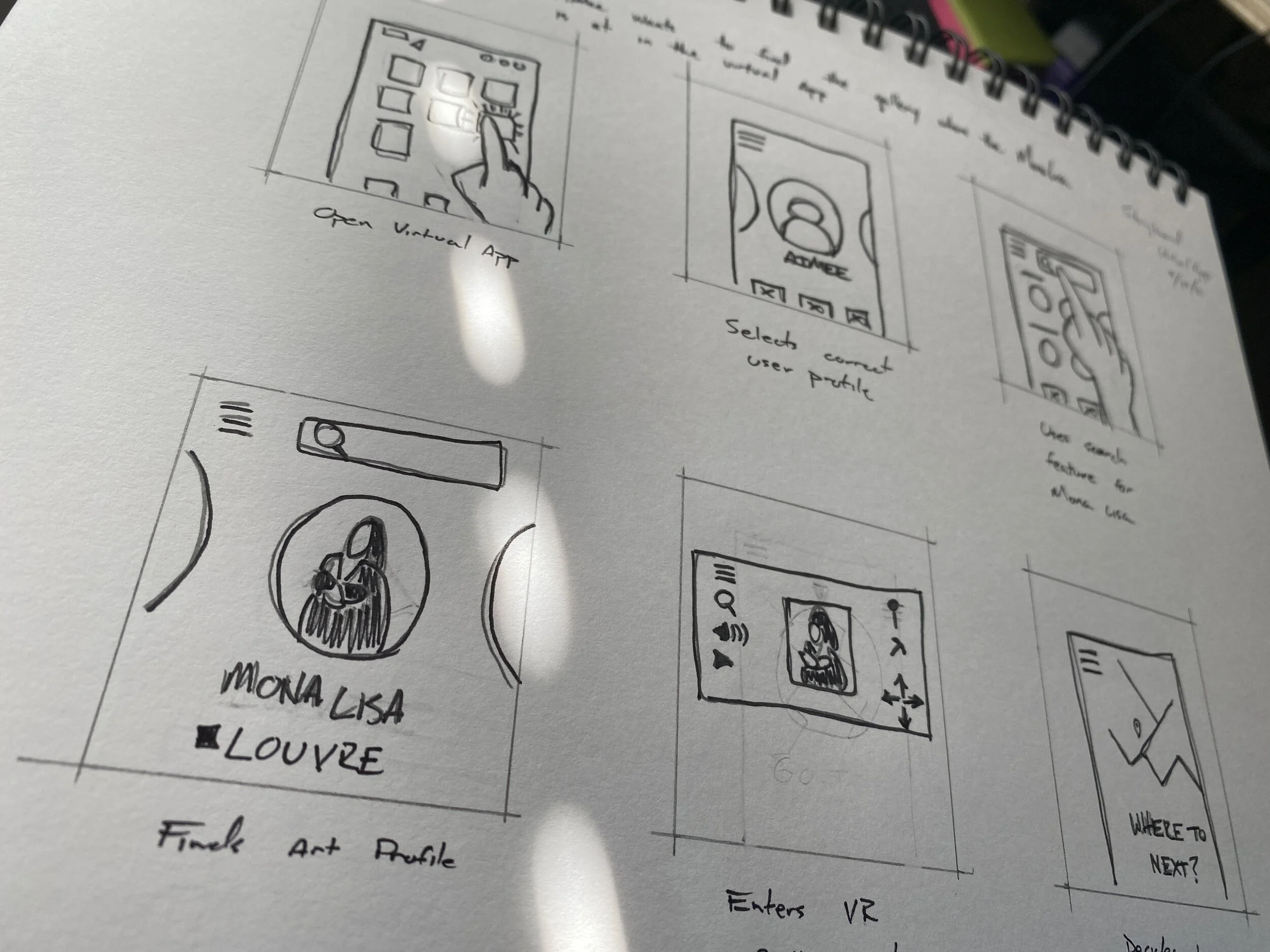 You can see my initial hand drawn wireframes where I was attempting to resolve the pain points I had discovered in my initial user research. I also conducted some competitor audits where I downloaded different versions of virtual reality apps.