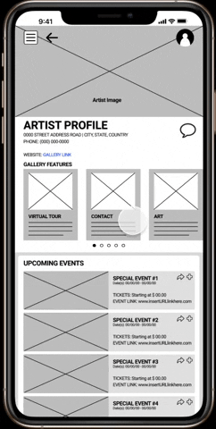 After the first usability study, 3 out of 5 users noted that they did not notice the swipe gesture functionality for the Gallery Features. So I added the dots below the sections as a way to resolve.